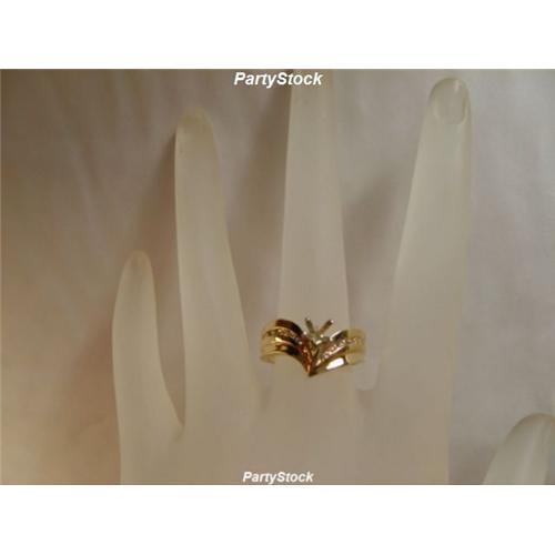 A beautiful Semi-Mount for your own Diamond or Gemstone! This solid 14K Yellow Gold ring is channel set with Genuine Diamonds (.1 Carat) on the sides. It has an open, 5 prong setting for a stone of up to 3mm diameter. The prongs on this semi-mount will accomodate any shape stone from .25 Carats - 2.00 Carats. Weighs 5.2 grams. Size 5.5. Measures approx. 3/8 inch wide.