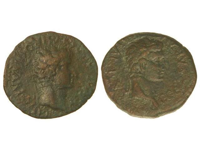 Semis. 15 a.C.-19 d.C. GERMÁNICO y CALÍGULA. Anv.: Busto de Calígula a derecha. Rev.: Busto de Germánico a derecha. ESCASA. Corpus Numorum-21.1. MBC.