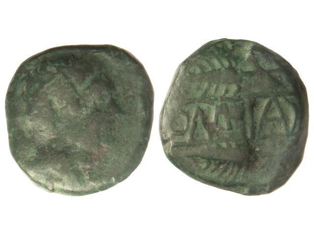 Semis. CARMO. Anv.: Cabeza masculina a derecha. Rev.: Dos espigas a izquierda, entre ambas CARMO de lectura inversa. 18,44 grs. Pátina verde. AB-462. BC/BC+.
