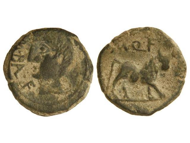 Semis. - CASTULO. - Anv.: Cabeza masculina a izquierda, alrededor M. BAL. F. Rev.: Toro a derecha, encima M.Q.F. 7,90 grs. Pátina verde. AB-748. MBC. - -
