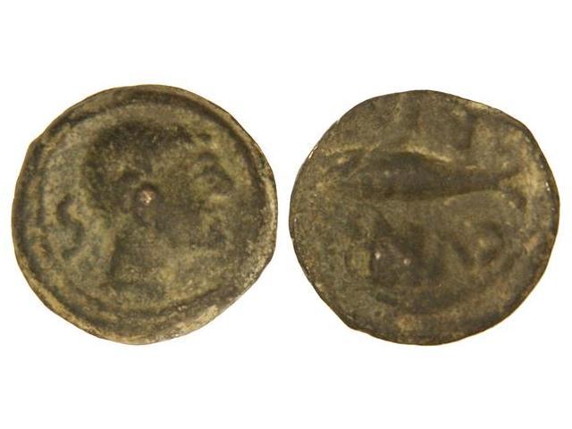 Semis. CUMBARIA. Anv.: Cabeza masculina a izquierda, detrás S. Rev.: Atún a izquierda. CVNBARIA. 5,50 grs. Pátina verde. AB-880. BCM.