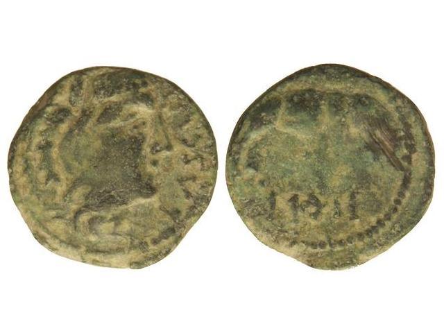 Semis. LASCUTA. Anv.: Cabeza de Hércules con piel de león a derecha, delante LASCVT. Rev.: Elefante a derecha, debajo leyenda libio-fenicia LSKWT. 5,42 grs. Pátina verde. ESCASA. AB-1670; Vill-8. MBC.