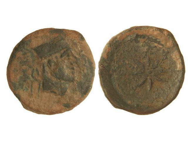 Semis. MALACA. Anv.: Cabeza de Vulcano a derecha con gorro plano, detrás (leyenda) y tenazas. Rev.: Estrella de ocho puntas de tamaño reducido. 7,90 grs. La altitud del cuello y el mango de las tenazas, únicas diferencias de cuños anteriores. Pátina oscura. (Oxidaciones). AB-1733 var. MBC-.