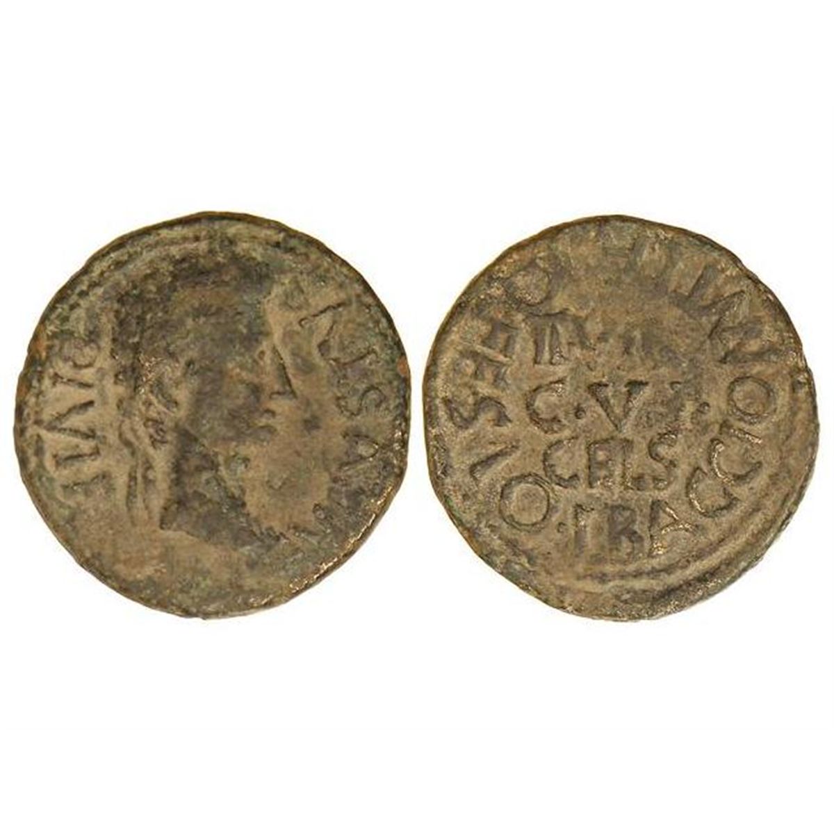 Semis. - ÉPOCA DE AUGUSTO. - CELSA. - Anv.: AVGVSTVS DIVI. F. R. Cabeza laureada de Augusto a derecha. Rev.: L. BACCIO. MAN. FLAVIO. FESTO en el centro II VIR. C. V. I. CELS. 4,42 grs. AB-815. MBC. - -