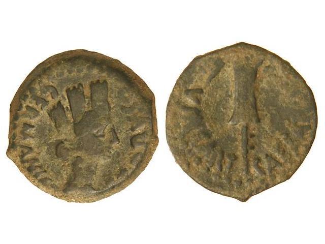 Semis. - ÉPOCA DE TIBERIO. - CARTEIA. - Anv.: GERMANICO ET DRVSO. Cabeza femenina con corona mural a derecha. Rev.: CAESARIBVS IIII VIR. CART. Timón. 4,30 grs. Pátina verde. AB-686. MBC+. - -