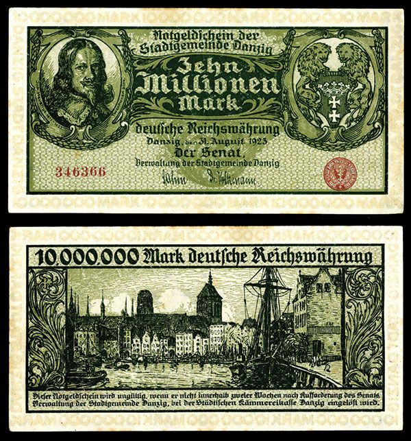 Danzig, 1923, 10 Millionen Mark, P-25b, Issued banknote, Choice AU to Uncirculated condition, attractive note.