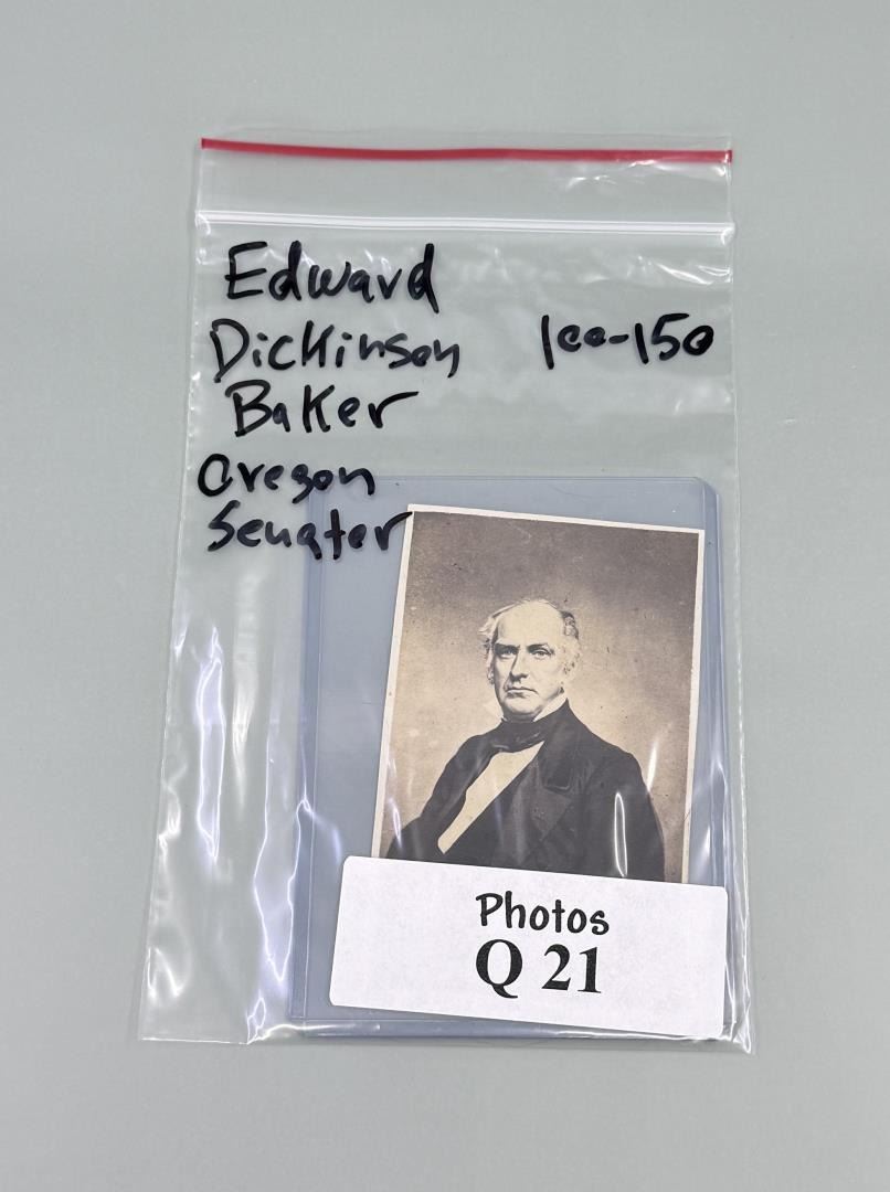 Published by E. Anthony of New York. Edward Dickinson Baker (February 1811 – October 1861) was an American politician, lawyer, and US army officer. In his political career, Baker served in the U.S. House of Representatives from Illinois and later as a U.S. Senator from Oregon. He was also known as an orator and poet. A long-time close friend of the President of the United States, Abraham Lincoln, Baker served as U.S. Army colonel during both the Mexican–American War and the American Civil War. Baker was killed in the Battle of Ball's Bluff while leading a Union Army regiment, becoming the only sitting U.S. senator ever to be killed in a military engagement.