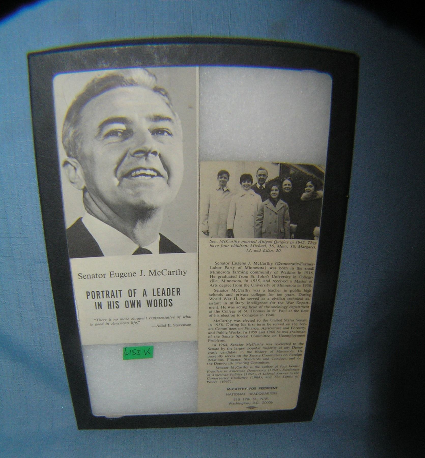 Senator Eugene J. McCarthy campaign booklet, both front and back showing est. value $30.00-$35.00