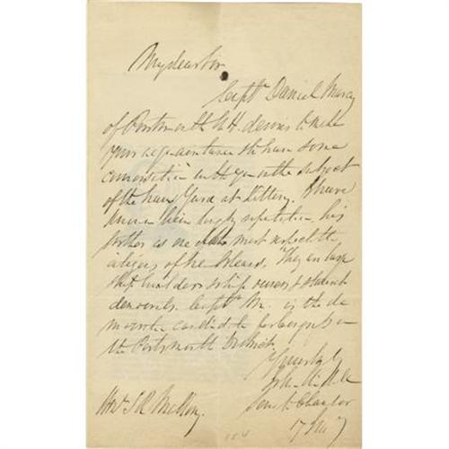 <B>Senator John Slidell Autograph Letter Signed,</B></I> 5 x 8, 4 pages, July 17, 1857, Washington. Fine. John Slidell (1793 -1871), a native of New York City, moved to Louisiana and became a U.S. representative and a U.S. Senator from that state in the mid-nineteenth century. During the American Civil War Slidell was one of the two CSA diplomats involved in the <I>Trent </B></I> Affair in November, 1861. After having been appointed the Confederate States of America's commissioner to France in September, 1861, he ran the blockade from Charleston, South Carolina, with James Murray Mason of Virginia. They then set sail from Havana on the British steamer RMS <I>Trent,</B></I> but were intercepted by the U.S. Navy while en route and taken into captivity at Fort Warren in Boston. After the resolution of the <I>Trent </B></I>Affair, the two diplomats set sail for Europe on January 1, 1862. <I>From the collection of Henry E. Luhrs</B></I> <BR><BR><b>Shipping:</b> Flat Material, Small (<a target="_blank" href="http://www.heritageauctions.com/common/shipping.php">view shipping information</a>)