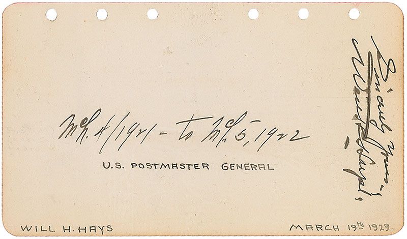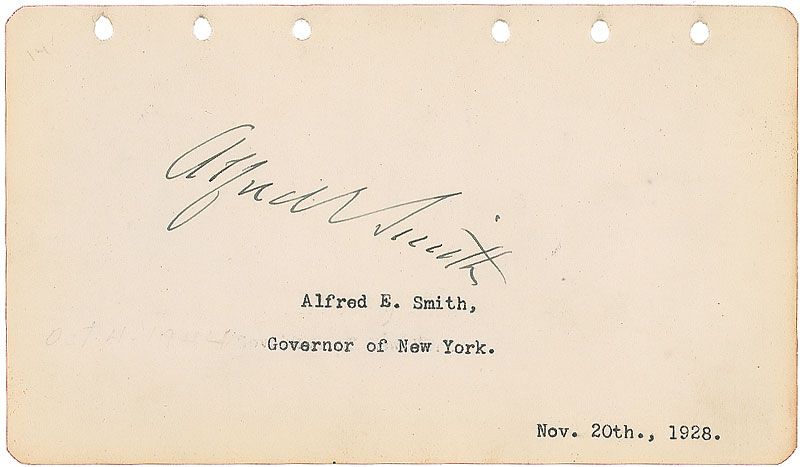 Two softcover autograph books, 4 x 6.25, signed inside on individual pages or affixed slips in ink by 90 political notables. Signers include: Alfred E. Smith, Will H. Hays, Francis L. Kellogg, Dwight F. Davis, Curtis D. Wilbur, Ray Lyman Wilbur, and Newton D. Baker. In overall fine condition.