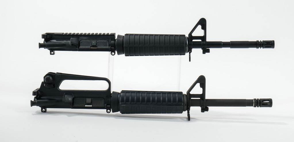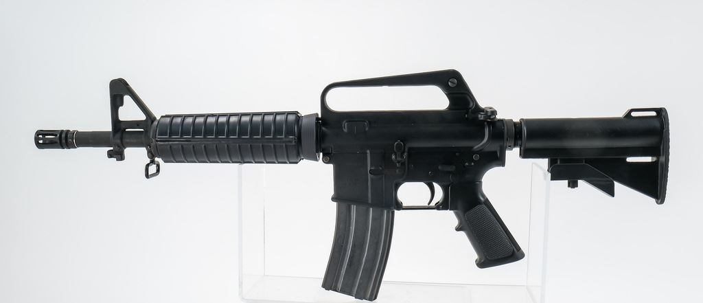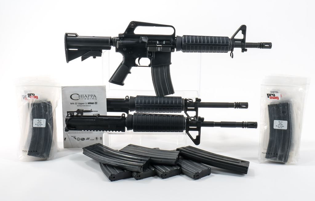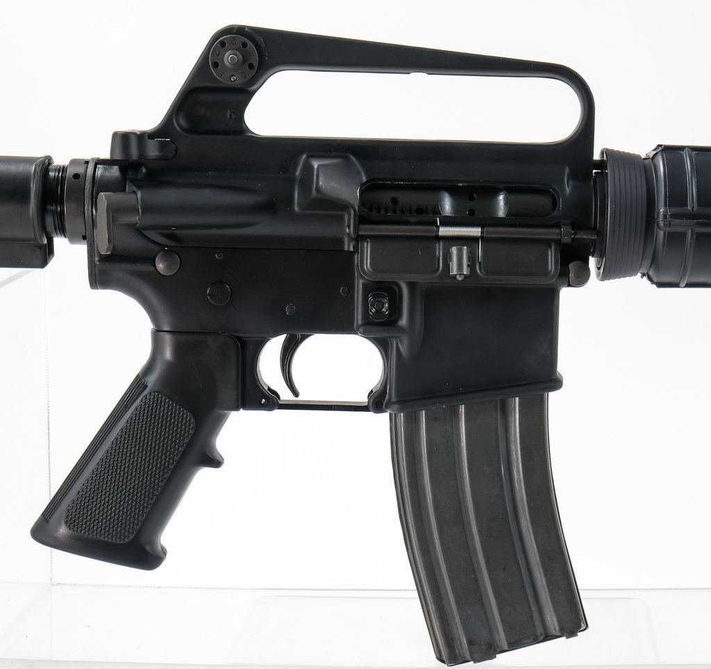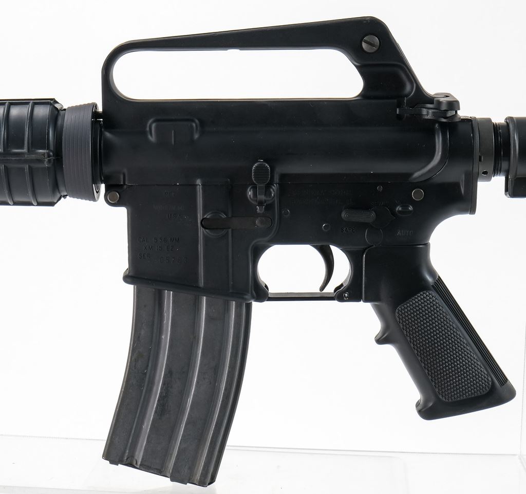 Sendra Corp., Bushmaster XM15 E2 lower S/N 05783 chambered in 5.56 MM with manufacturer mark on left side “BFI / WNDHM ME USA”. This has a 3-position selector safe/semi/auto but is currently configured as Full Auto only firing from a closed bolt with floating firing pin. Additional uppers include 5.56 A1 style with 12-1/2? bbl with flash hider, 5.56 A2 style 15-1/2" bbl with flash hider and Chiappa flat top 22LR. All parts retain a nice matched black finish. Bores shine bright with crisp rifling. All furniture is in very nice condition. An excellent example of a transferable M16 style platform ready to scratch your F/A itch. NFA Transferable on Form 3/4.