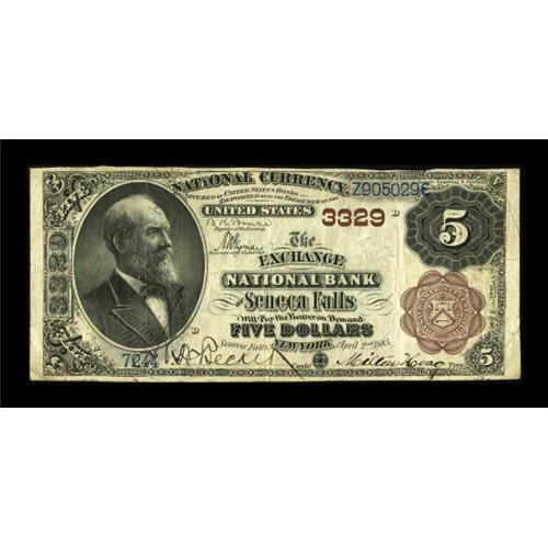 <B>Seneca Falls, NY</B></I> - $5 1882 Brown Back Fr. 467 <B>The Exchange NB</B></I> Ch. # 3329<BR> An attractive $5 Brown Back with a distinctive layout. Nice <B>Very Fine,</B></I> with bold pen signatures. <BR><BR><b>Shipping:</b> Coins & Currency (<a target="_blank" href="http://www.heritageauctions.com/common/shipping.php">view shipping information</a>)