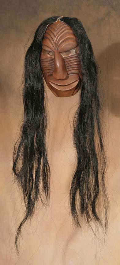 Seneca False Face Mask. 11" x 7" plus horsehair. Hand carved & painted in the form of "Old Broken Nose", metal eyes. Circa 1930s. (est $1,500-2,000). For condition reports please visit: www.auctioninsantafe.com/cr2011.pdf