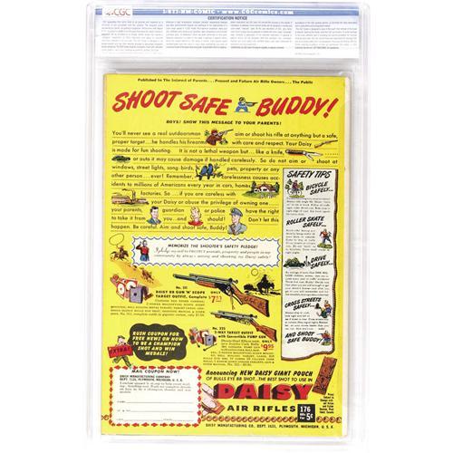 48C. COMICS – Comic books sold referencing a third-party grading service are sold "as is" without any express or implied warranty. Certain warranties may be available from the grading services and the Bidder is referred to them for further details: Comics Guaranty Corporation (CGC), P.O. Box 4738, Sarasota, FL 34230. Subject to sections 57 and 58, bidders who intend to challenge authenticity or provenance of a lot must notify Auctioneer in writing within thirty (30) days of the Auction's conclusion. Auctioneer's maximum liability shall not exceed the high bid on that lot, which bid shall be deemed for all purposes the value of the lot. In the event Auctioneer cannot deliver the lot or subsequently it is established that the lot lacks title, provenance, authenticity, or other transfer or condition issue is claimed, Auctioneer's liability shall be limited to recission of sale and refund of purchase price. After one year has elapsed, Auctioneer's maximum liability shall be limited to any commissions and fees Auctioneer earned on that lot.