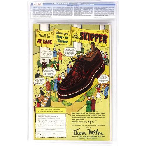 <B>Sensation Comics #103 Davis Crippen ("D" Copy) pedigree (DC, 1951) CGC NM- 9.2 Off-white to white pages.</B></I> This is the only copy graded above VF- 7.5 as of this writing! The robot cover is credited to Irwin Hasen. Overstreet 2006 NM- 9.2 value = $600. CGC census 6/06: 1 in 9.2, none higher. <I>From the Crippen Collection.</B></I> <BR><BR><B>Important notice:</B> Heritage usually auctions material at the rate of 200-250 lots per hour. On some occasions eBay Live bid software or the Internet may not be able to keep up with the pace of the auction. We recommend placing a realistic absentee bid now as insurance to avoid disappointment. Occasionally the auctioneer may eliminate or reject an eBay Live bid, and the auctioneer may also reopen a lot after the close of the eBay live bidding (usually because we missed an audience bid), and may reject your bid even if it shows you as the winning bidder. By bidding via eBay Live, you agree that Heritage may award the lot to another bidder at its sole discretion under the circumstances described above or any other reasonable circumstances. Since eBay bids are not shown to us until we open the lot on the floor, we treat those bids just like floor bids. In most cases the floor responds before the eBay bid is presented to us, due to Internet lag time, so for consistency we have made it a policy that floor bids are always considered first over tie eBay live bids. Also please note that all Heritage lots purchased through eBay Live carry a 22.5% Buyer's Premium. Please make sure you read the Terms and Conditions before you bid. This lot is being auctioned in conjunction with a live floor auction by Heritage Auction Galleries. All final auction and invoice information will be supplied by Heritage Auction Galleries, and all other information should be considered preliminary. Lot:41001 <BR><BR><B>Winning Notification and Billing:</B> After the FINAL session in this auction is complete, Heritage will send e-mail and snail mail invoices. This process normally takes several days. All final auction and invoice information will be supplied by Heritage Auction Galleries, and all other information should be considered preliminary. <BR><BR>This auction will be conducted on a live auction floor and over the Internet through eBay Live. If you choose to place an absentee bid, please take a moment to <font color='#0000ff'><u><a href='http://pages.ebay.com/liveauctions/help/before/laabsentee.html'>learn how eBay Live absentee bidding works</a></u></font><font color='#000000'>