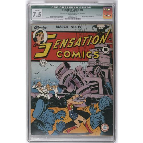 Sensation Comics #15 (DC, 1943) CGC Qualified VF- 7.5 O Sensation Comics #15 (DC, 1943) CGC Qualifie