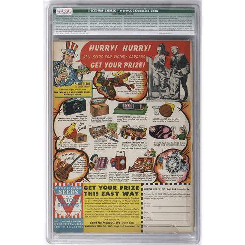 <B>Sensation Comics #15 (DC, 1943) CGC Qualified VF- 7.5 Off-white pages.</B></I> H. G. Peter cover. Peter, Sheldon Moldoff, and Howard Purcell art. CGC notes, "Coupon cut out of 12th page, affects art. Incomplete." Overstreet 2006 GD 2.0 value = $100; VG 4.0 value = $200; FN 6.0 value = $300; VF 8.0 value = $625. <I>From the Collection of Harold Curtis.</B></I>