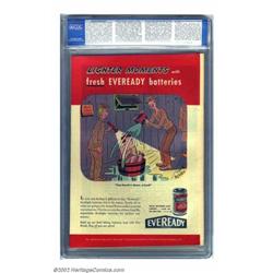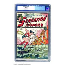 Sensation Comics #35 (DC, 1944) CGC NM- 9.2 Off-white to white pages. It seems a bit ludicrous for a copy this nice to have a minus sign attached to it, but Near Mint Minus puts this book in high quality company, and rare at that. H. G. Peter splashes on more color than usual, so gaze with care! If you're waiting on our declaration that this copy is the finest CGC has graded to date of issue #35, consider it declared! This will gussy up the dingiest of collections, or make a gaudy collection even gaudier. Overstreet 2002 NM 9.4 value = $525. Important notice: We expect to be auctioning lots at the rate of 200-250 per hour. Sometimes eBay Premier live bid software cannot keep up with that pace, so we strongly recommend that you place a realistic proxy bid now as insurance to avoid disappointment. Also please note that all Heritage/CAA lots purchased through eBay Premier carry a 20% Buyer's Premium. Please make sure you read the Terms and Conditions.