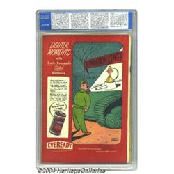 Sensation Comics #53 (DC, 1946) CGC NM- 9.2 Off-white pages. Wonder Woman gets in a playful mood on this nice H. G. Peter cover, a great book for comic collectors who are also dog lovers! This attractive copy is loaded with great color and eye appeal. Inside, you'll find stories featuring Sargon the Sorcerer, Mr. Terrific, and Wildcat. There are currently only three copies of this issue that have been graded higher by CGC. Overstreet 2003 NM 9.4 value = $450. Important notice: Heritage usually auctions material at the rate of 200-250 lots per hour. On some occasions eBay Live bid software or the Internet may not be able to keep up with the pace of the auction. We recommend placing a realistic absentee bid now as insurance to avoid disappointment. Occasionally the auctioneer may eliminate or reject an eBay Live bid, and the auctioneer may also reopen a lot after the close of the eBay live bidding (usually because we missed an audience bid), and may reject your bid even if it shows you as the winning bidder. By bidding via eBay Live, you agree that Heritage may award the lot to another bidder at its sole discretion under the circumstances described above or any other reasonable circumstances. Since eBay bids are not shown to us until we open the lot on the floor, we treat those bids just like floor bids. In most cases the floor responds before the eBay bid is presented to us, due to Internet lag time, so for consistency we have made it a policy that floor bids are always considered first over tie eBay live bids. Also please note that all Heritage lots purchased through eBay Live carry a 20% Buyer's Premium. Please make sure you read the Terms and Conditions before you bid.