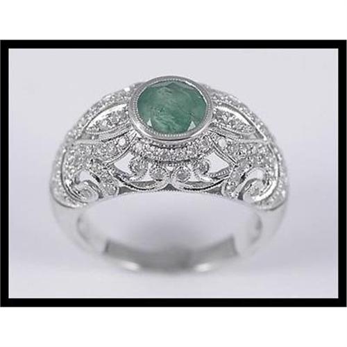 Sensational ring with 1 emerald that weighs 1.45 carats and 98 diamonds that weigh 0.65 carats set in 18K white gold. The size 7 ring that measures 11.77 millimeters (0.46 inches) wide and weighs 5.00 grams total weight.