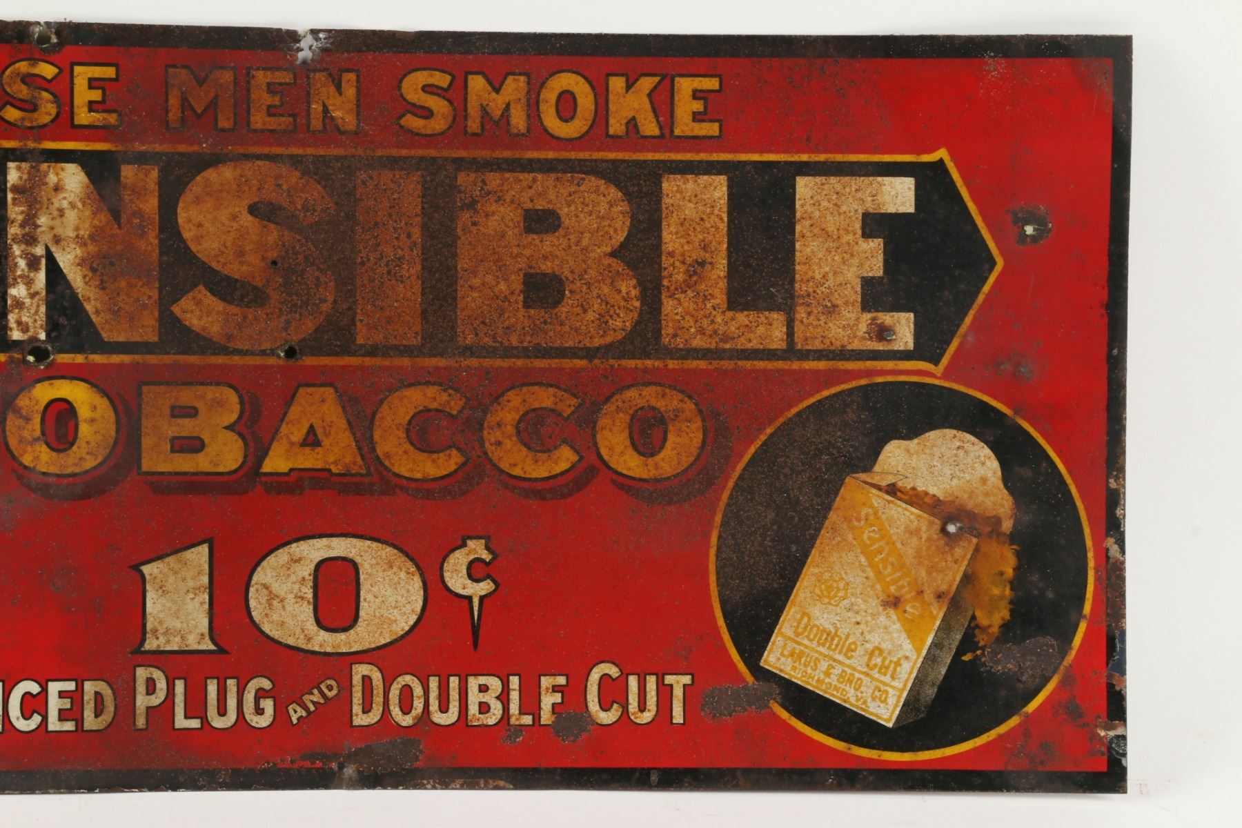 American. Circa 1920. Larus & Bro Co, Richmond, Virginia. 19.5" x 9". Mounting and rust perforations. Advanced edge wear and loss. Generalized surface oxidization. $100-200.
