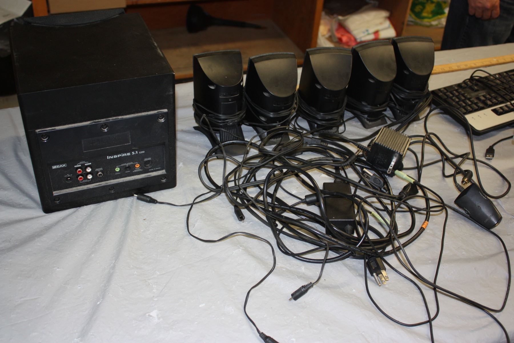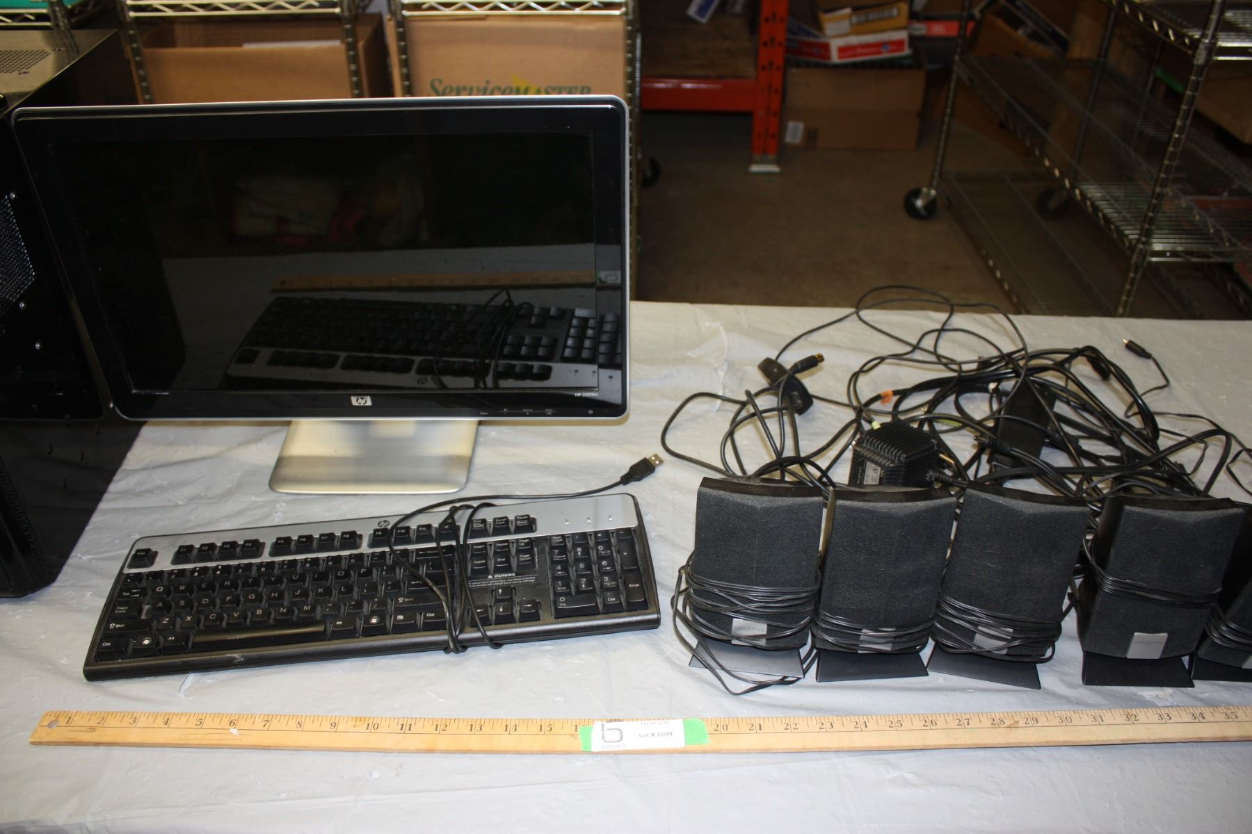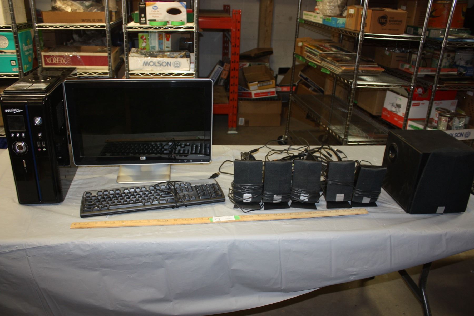 Sentey PC Tower, HP Monitor and Creative Speaker Set (5 Speakers 1 Base) and Cords