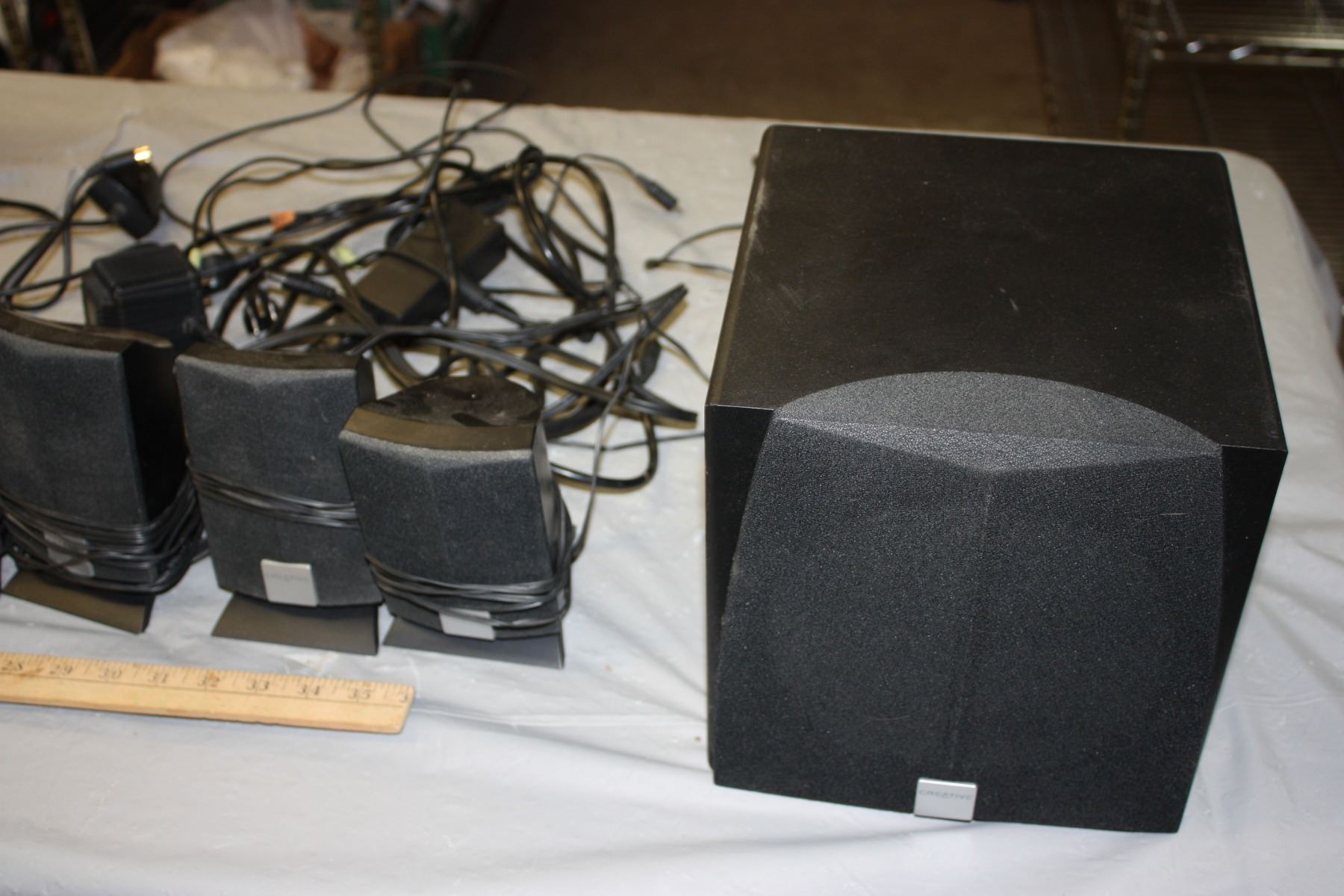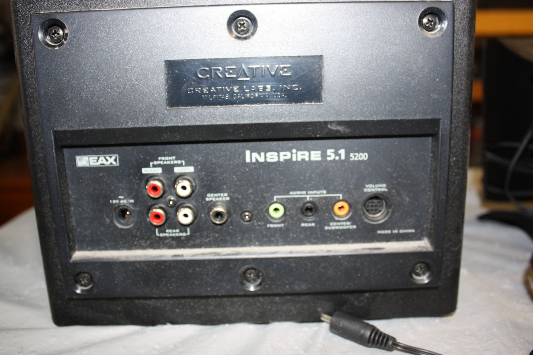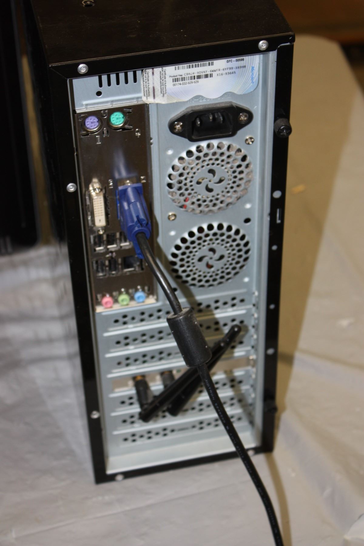 Sentey PC Tower, HP Monitor and Creative Speaker Set (5 Speakers 1 Base) and Cords