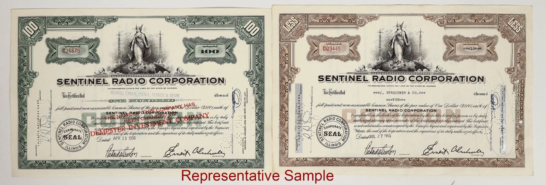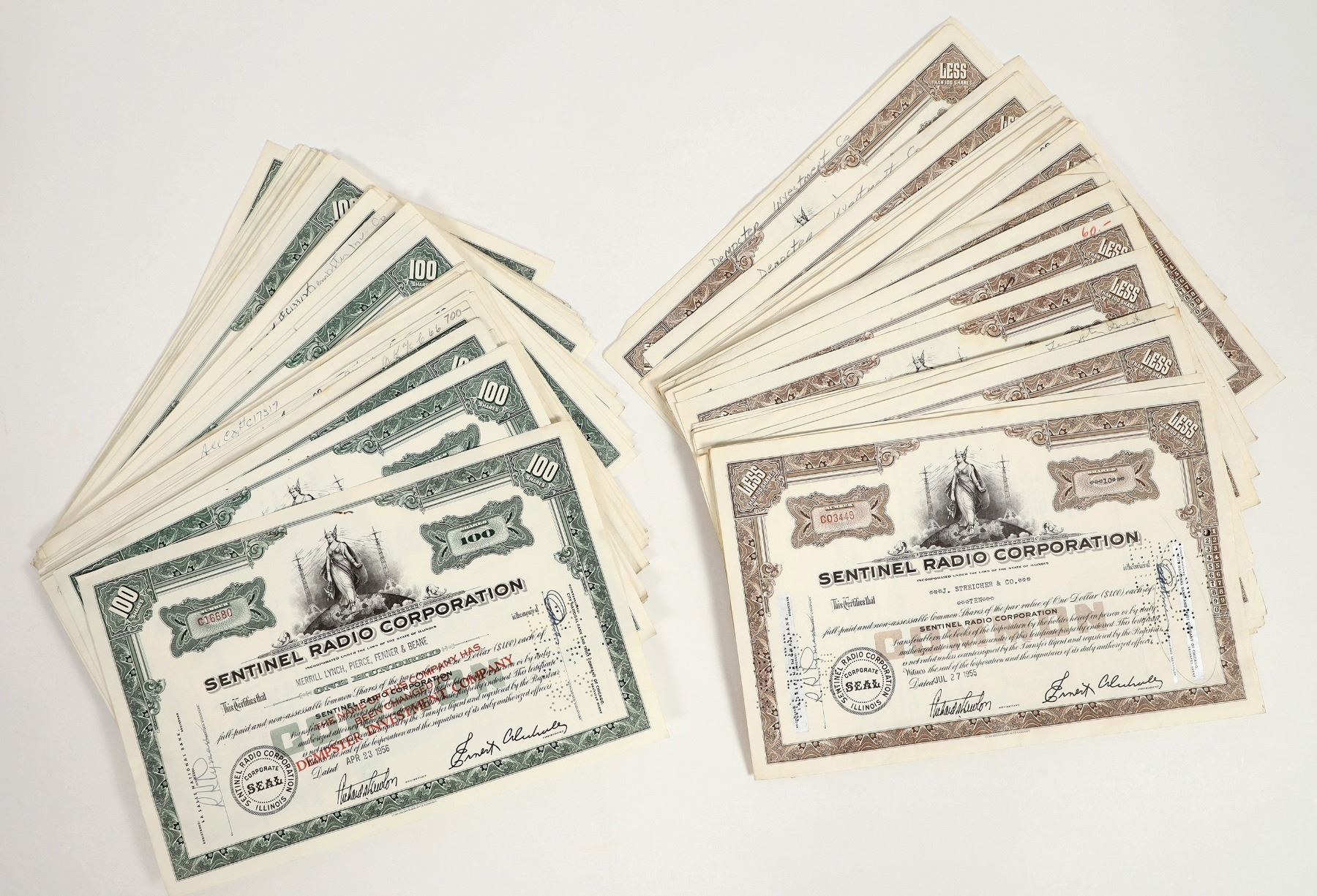 About 100 Sentinel Radio Corp. Stocks c. 1950s. Two varieties.
