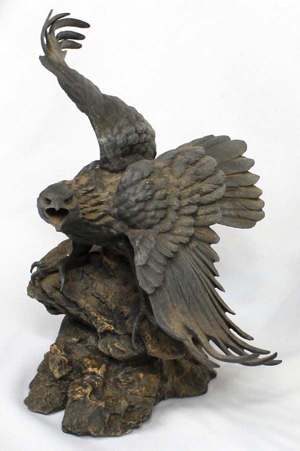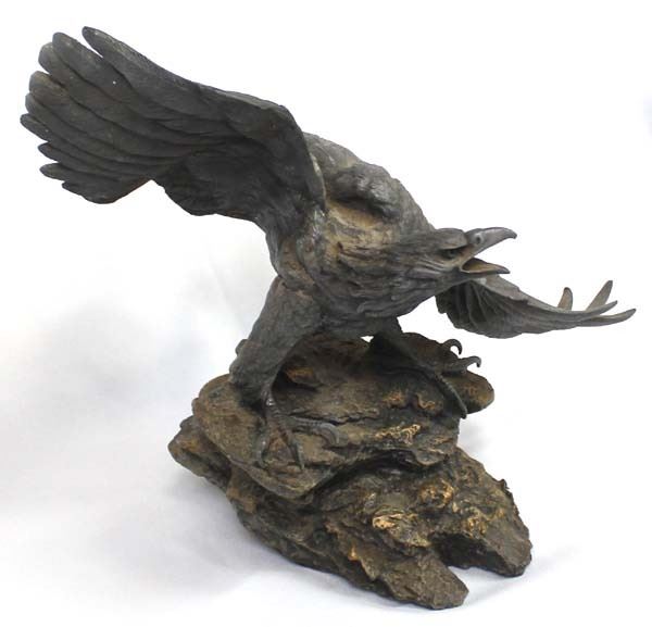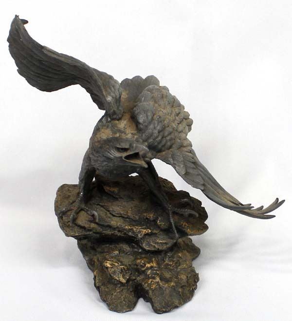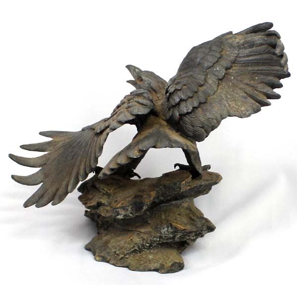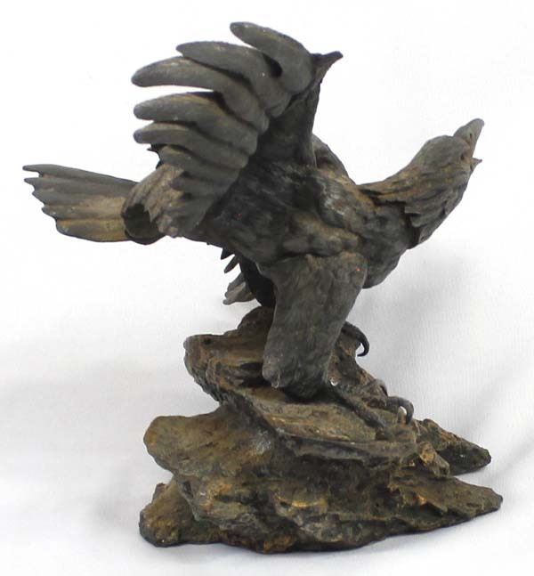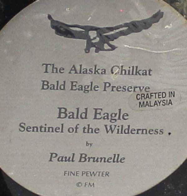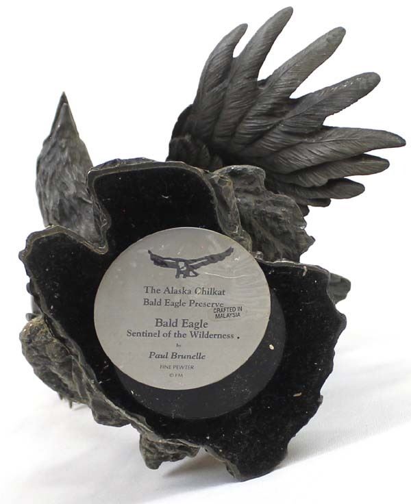 Sentinel of the Wilderness Bald Eagle Fine Pewter Statue by Paul Brunelle, The Alaska Chilkat Bald Eagle Preserve, height to top of the wing measures 10'' and wingspan of 13.5'', marked on the bottom, weighs 8 lbs. 4 oz.