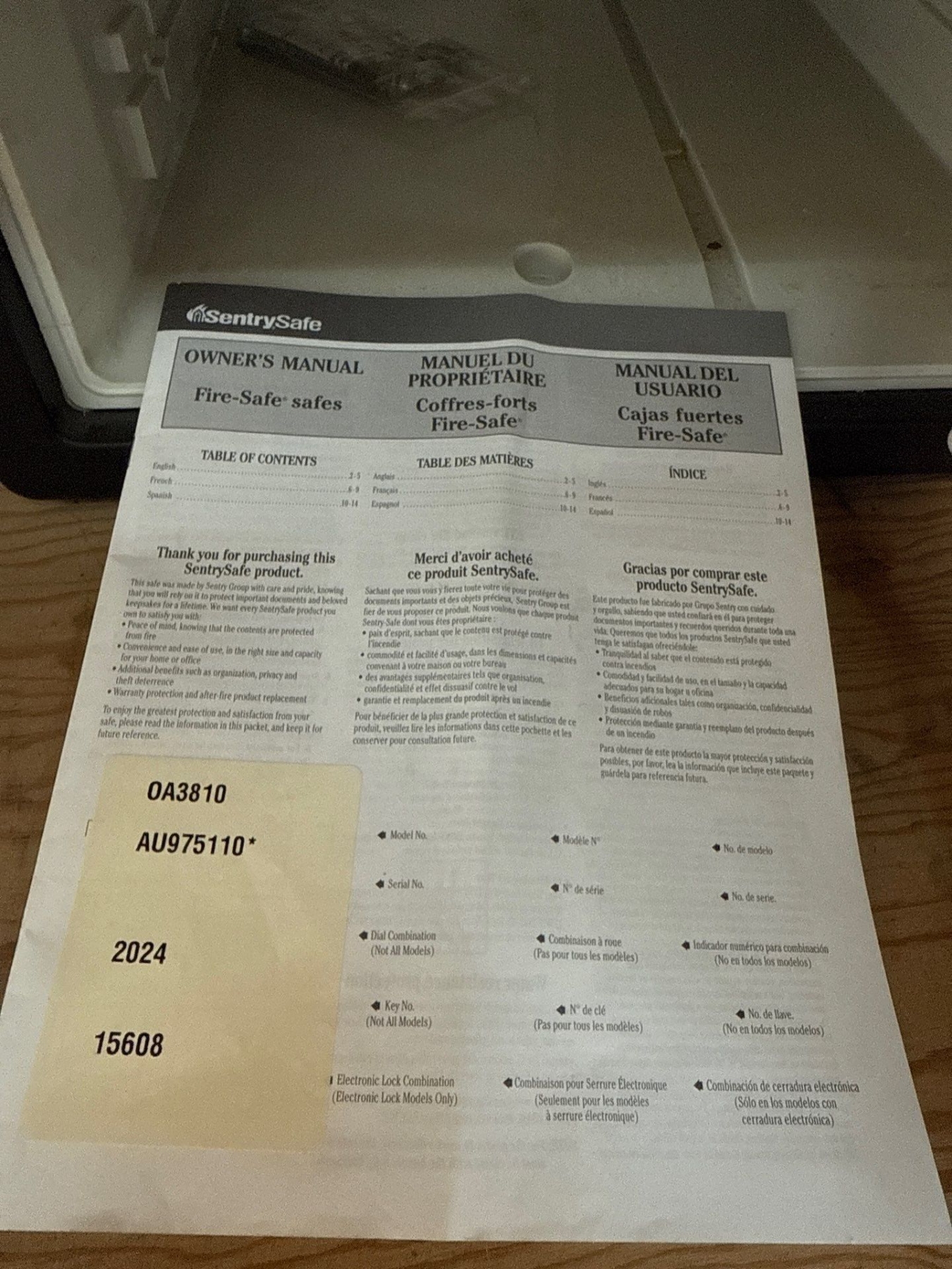 Sentry Fireproof Safe in Great Condition, bring Help, Model AU-975110, 16W, 18D