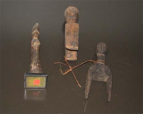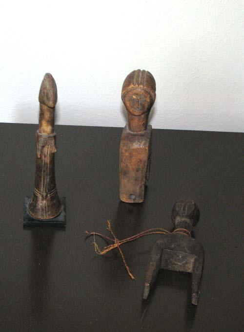 Title: Senufo Lock with Incised Geometric Decoration; Two African Spools and Mossai doll Figure