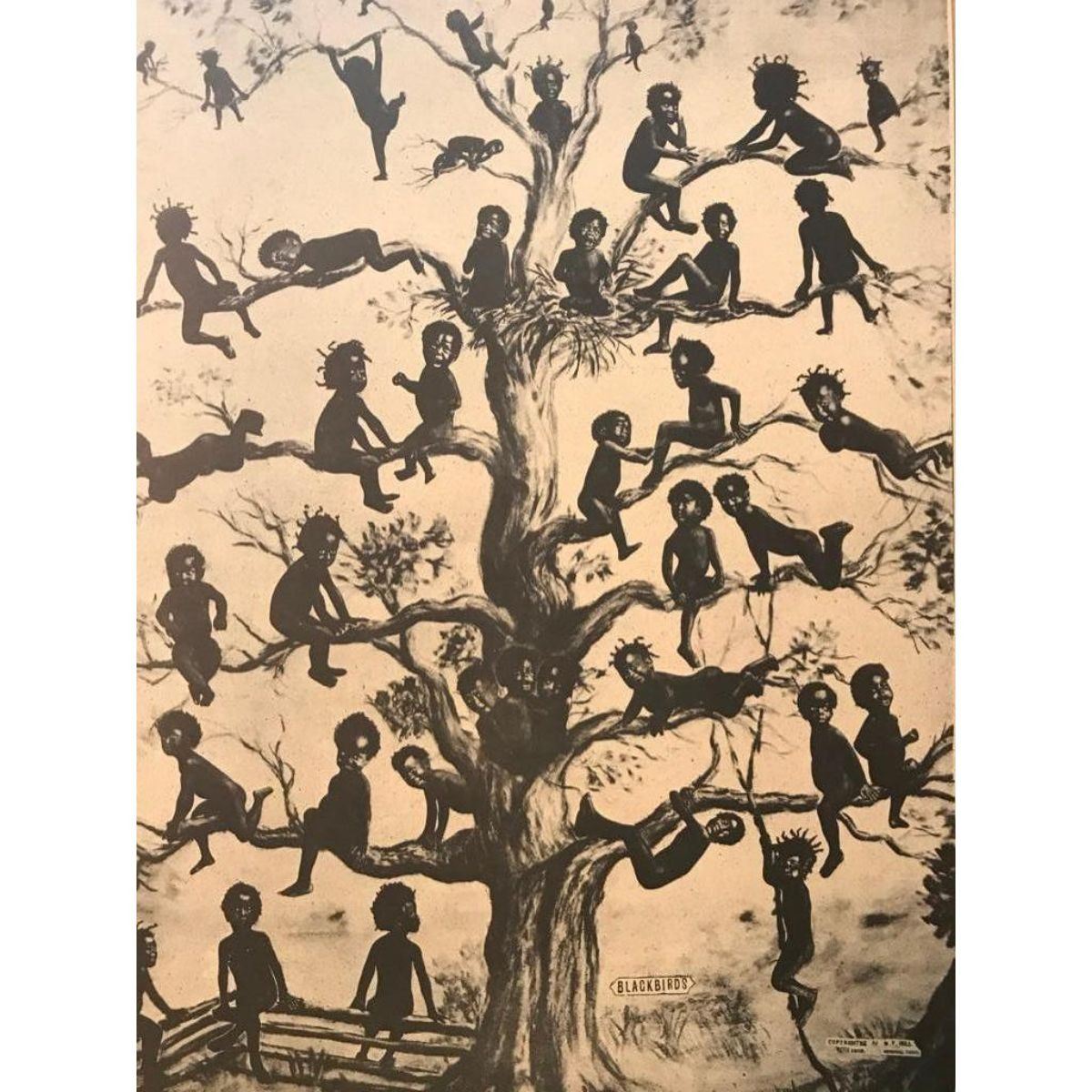 African American History, Black Americana Subject, "Blackbirds" sepia-tone print, created after an original from 1908 by W.F. Bell, Memphis Tennessee. 11" X 14".Â