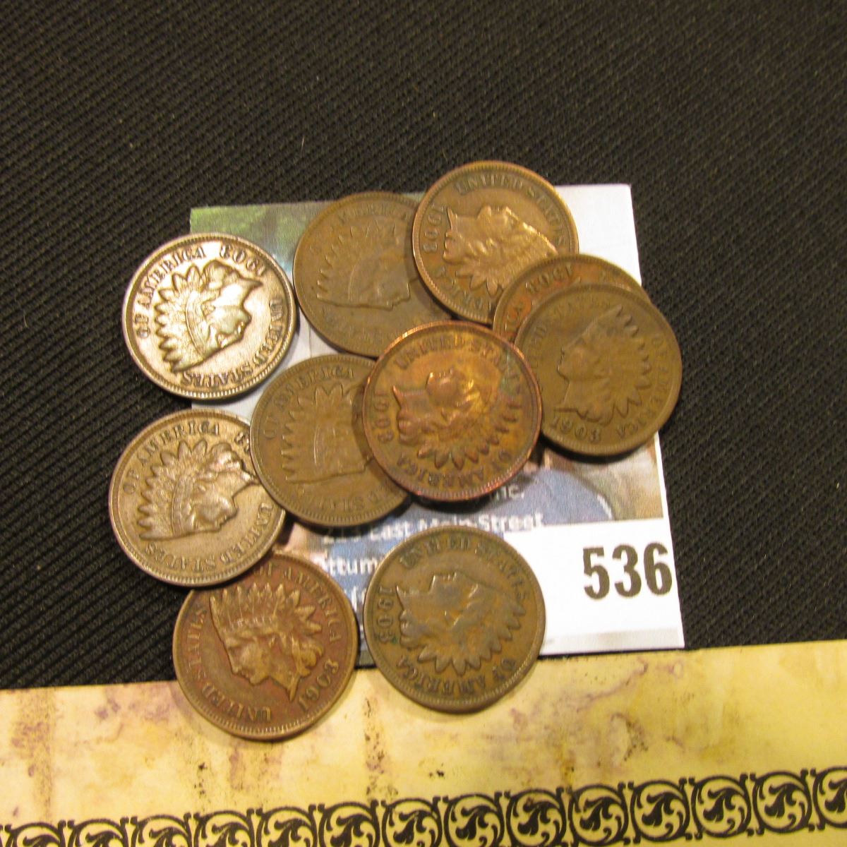 Sept. 23, 1905 2 1/2 Shares of "The Tipton Hotel Association of Tipton, Iowa", Iowa State Seal in upper center; & (10) 1903 Indian Head Cents in Fine to EF.