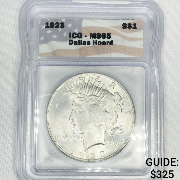 1923 Dallas Hoard Silver Peace Dollar ICG-MS65