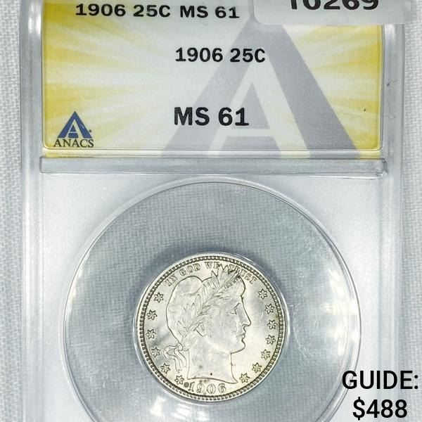 1906 Barber Quarter ANACS-MS61