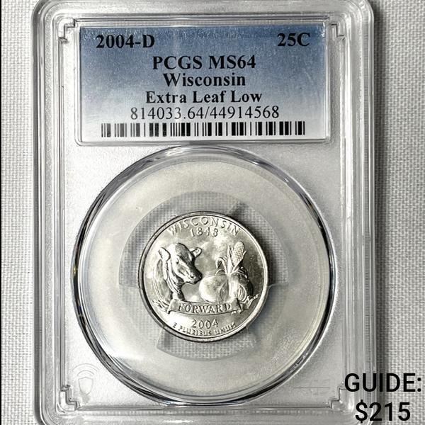2004-D Xtra Lf Low Wisconsin Quarter PCGS-MS64