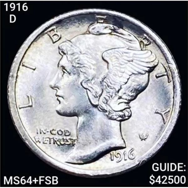 1916-D Mercury Silver Dime CHOICE BU+ FSB