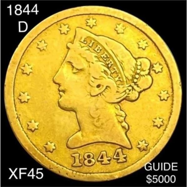 1844-D $5 Gold Half Eagle NEARLY UNCIRCULATED
