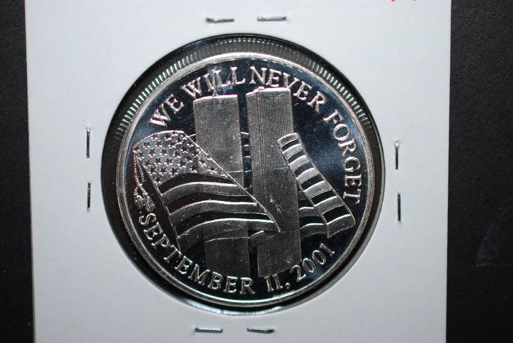 September 11, 2001 We Will Never Forget Silver Round; One Year Memorial 9-11; .999 Fine Silver 1 Oz.; EST. $40-50