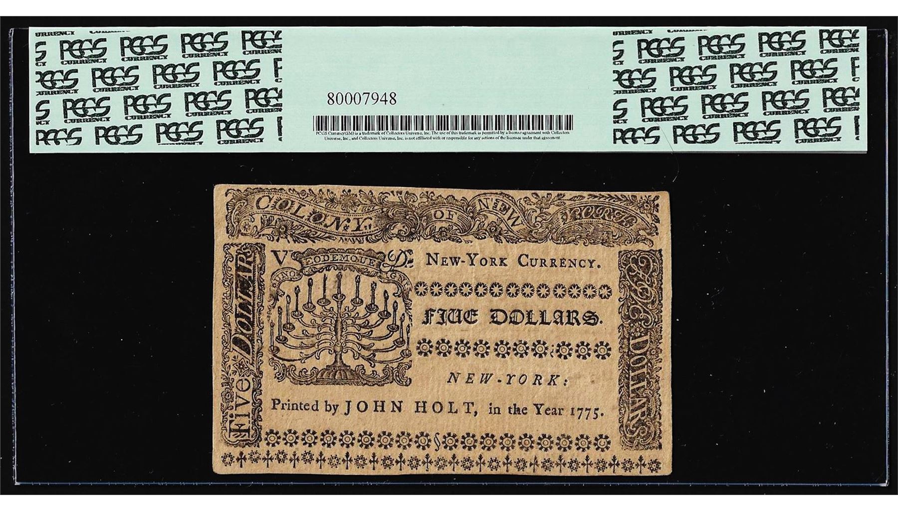 September 2, 1775 $5 New York Colonial Currency Note PCGS Choice New 63PPQ