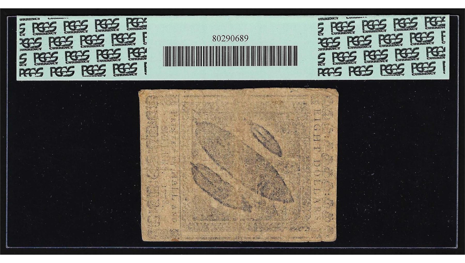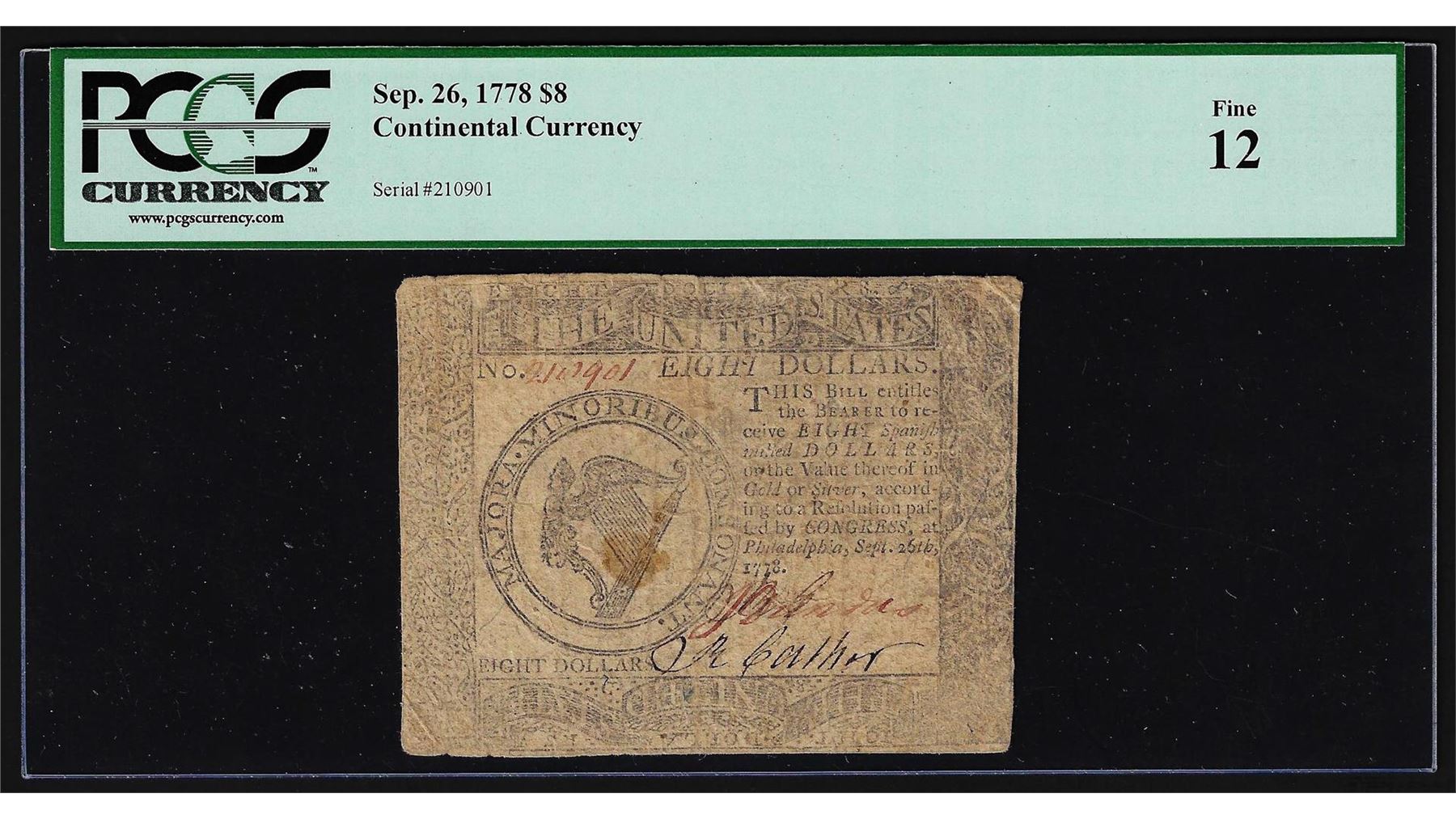 September 26, 1778 $8 Continental Currency Note PCGS Fine 12