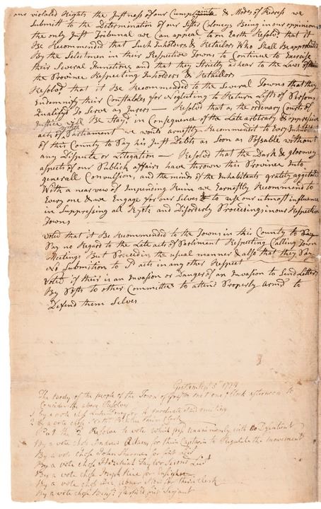 September 5, 1774 Manuscript Document Defying the Tyranny of the Intolerable Acts Pre Revolutionary War