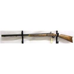 NON-RESTRICTED, SINGLE SHOT, 36 PERCUSSION, 27" BARREL, SN 7466. WOOD CRACKED ON RIGHT SIDE IN FOREARM, BLUING IS GREY, BORE PITTED.