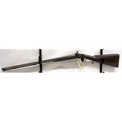 ANTIQUE, FLINTLOCK MUZZLELOADER, .58 CALIBER, 50" BARREL, NO SN. STOCK HAS NUMEROUS WEAR BARKS, AND A REPAIR AT TOE, APPEARS TO HAVE BEEN SHORT...