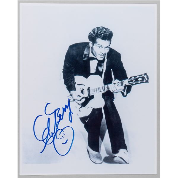 (1926-2017) American singer, songwriter and guitarist who pioneered rock and roll. Signed black-and-white photograph in blue ink, 8 x 10 inches.