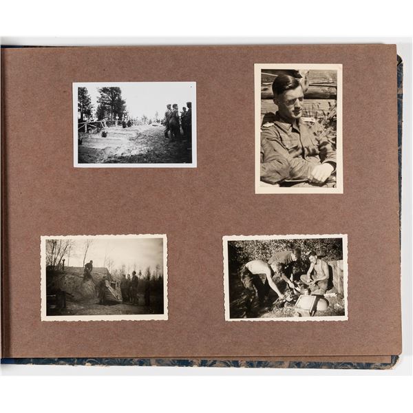 Photo album for a WWII German Army soldier containing 88 photos showing soldiers on the battlefield, a German unit photo, soldier graves, anti-aircraf