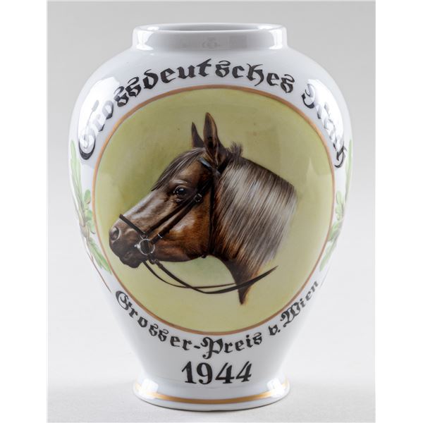 German WWII horse racing trophy, a porcelain vase presented at the Greater German Reich Great Prize of Vienna 1944 horse race (Grossdeutsches Reich Gr