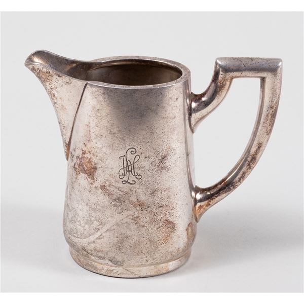 Silver plate creamer pitcher prominently debossed with the logo of the Leibstandarte Adolf Hitler and hallmarked on the bottom 'Original Wellner...