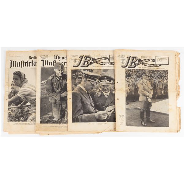 Four German newsmagazines, 2 issues of the Illustrierter Beobachter, issues dated 20.10.38, 2.11.39; one issue of Berliner Illustrierte 21.9.39, and o