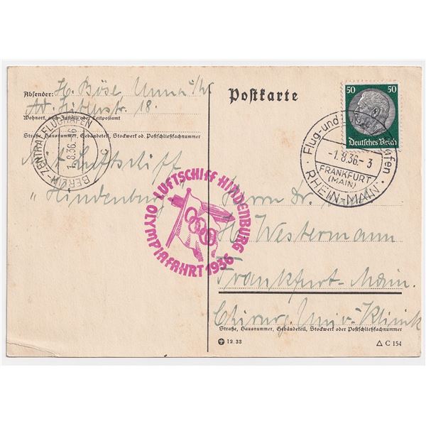 48 - HINDENBURG LZ129 OLYMPIC FLOWN COVERFairhilll Auction